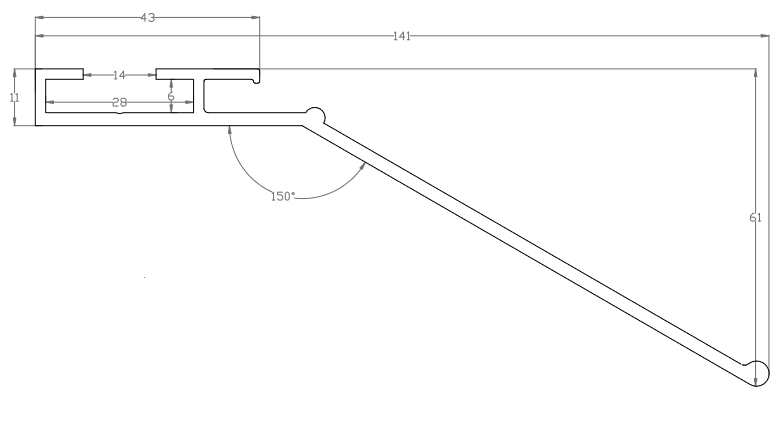 The aluminum profile AL 30 W SHARK was developed for creating eye-catching frames, termo, vibrant and silent panels which can be fixed on the wall as well as on the ceiling. The main advantage of such a structure is the elegant sharp edge created by a diagonal profile plane at an angle of 150 degrees to the horizontal