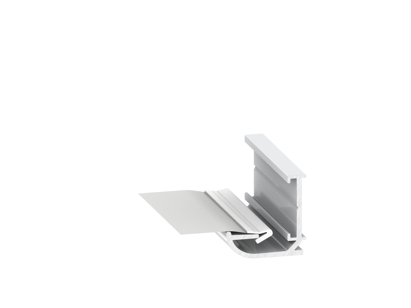 Basic aluminum profile for perimeter stretch ceiling installation. The profile is attached to the walls only. Creates a molding effect around the perimeter of the structure.