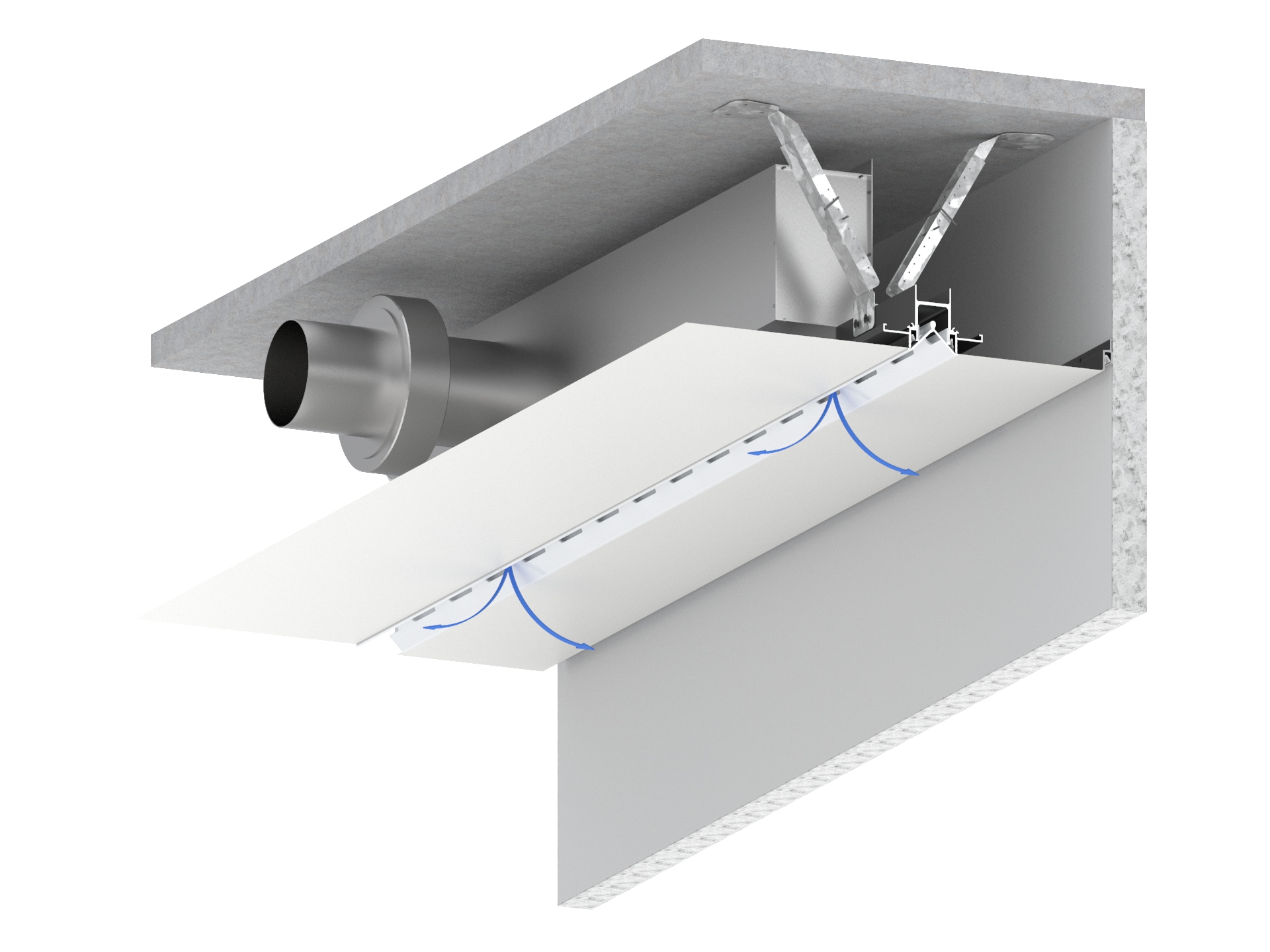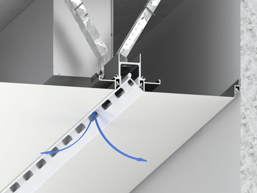 Profile for creating ventilation integrated in the ceiling system. This efficient air profile minimizes the need for additional cooling. Smart Air helps to maximize the efficiency of an existing ventilation system.